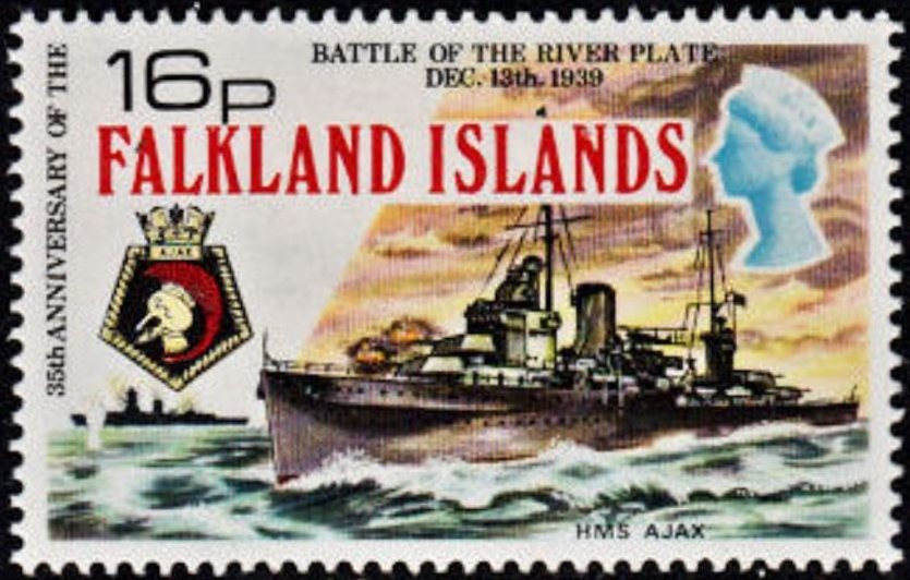 Visibility: public Image owner: none postage 12/13/1974 16p multi issue=Battle of the River Plate 35th d=H.M.S. "Ajax" wmk=St Edwards crown & CA perf=14.5 Crops No visible images cropped from this one. Measurements Resolution is unknown. Source Source name: Colnect File URL: http://i.colnect.net/b/3910/243/Battle-of-the-River-Plate.jpg Uploaded November 7, 2017, 7:41 pm by Stan Shebs |