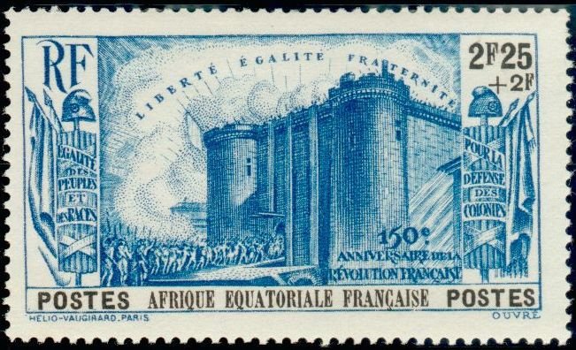 Visibility: public Image owner: none semipostal 7/5/1939 2.25+2fr bl&blk issue=French Revolution 150th d=storming of the Bastille unwmk Crops No visible images cropped from this one. Measurements Resolution is unknown. Source Source name: Colnect File URL: http://i.colnect.net/b/794/027/Prise-de-la-Bastille.jpg Uploaded August 26, 2014, 2:12 pm by Stan Shebs |