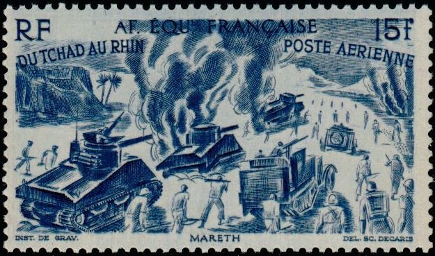 Visibility: public Image owner: none airmail 6/6/1946 15fr issue=Chad to Rhine d=tanks at Mareth unwmk Crops No visible images cropped from this one. Measurements Resolution is unknown. Source Source name: Colnect File URL: http://i.colnect.net/b/794/769/Tchad-au-Rhin.jpg Uploaded August 26, 2014, 2:14 pm by Stan Shebs |