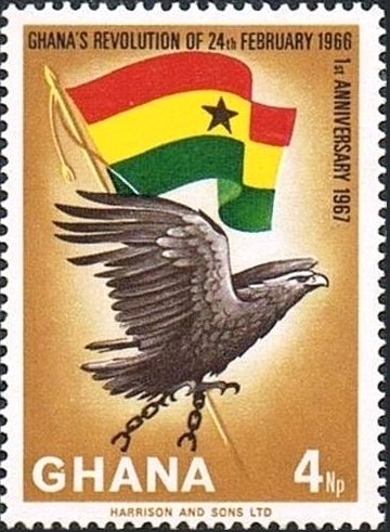 Visibility: public Image owner: none postage 2/24/1967 4np multi issue=1st Anniversary of 24 February Revolution d=flag of Ghana & eagle wmk=star & G mult perf=14x14.75 Crops No visible images cropped from this one. Measurements Resolution is unknown. Source Source name: Colnect File URL: http://i.colnect.net/b/4194/212/Eagle-and-Flag.jpg Uploaded November 10, 2017, 7:48 pm by Stan Shebs |