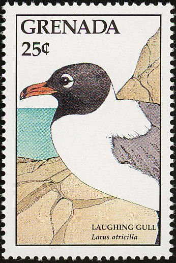 Visibility: public Image owner: none postage 5/31/1988 25c multi dt=birds (1988 Grenada) d=Larus atricilla (1988) wmk=St Edwards crown & CA perf=14 Crops No visible images cropped from this one. Measurements Resolution is unknown. Source Source name: Colnect File URL: http://i.colnect.net/b/4398/898/Laughing-gull.jpg Uploaded November 21, 2017, 7:21 pm by Stan Shebs |