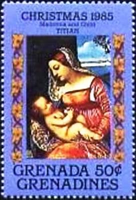 Visibility: public Image owner: none postage 12/23/1985 50c multi issue=Christmas 1985 d="Madonna and Child" - Titian unwmk perf=15 Crops No visible images cropped from this one. Measurements Resolution is unknown. Source Source name: Colnect File URL: http://i.colnect.net/b/4309/159/Madonna-and-Child-by-Titian.jpg Uploaded November 22, 2017, 3:46 pm by Stan Shebs |