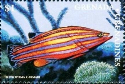 Visibility: public Image owner: none postage 12/12/1997 $1 multi issue=Fish 1997 dt=fishes (1997 Grenada Grenadines) d=Liopropoma carmabi (1997) unwmk perf=14.25 Crops No visible images cropped from this one. Measurements Resolution is unknown. Source Source name: Colnect File URL: http://i.colnect.net/b/4385/467/Lioproporna-carmabi.jpg Uploaded November 22, 2017, 6:27 pm by Stan Shebs |