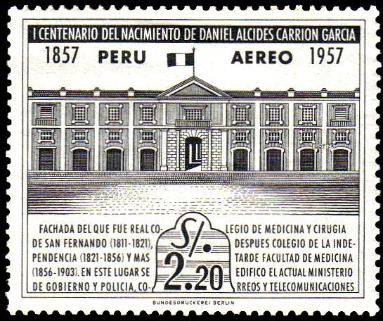 Visibility: public Image owner: none airmail 7/24/1958 2.20s multi issue=Daniel Alcides Carrion 100th d=Medical & Surgery College unwmk Crops No visible images cropped from this one. Measurements Resolution is unknown. Source Source name: Colnect File URL: http://i.colnect.net/b/1103/560/Medical-and-Surgery-College.jpg Uploaded August 26, 2014, 2:33 pm by Stan Shebs |