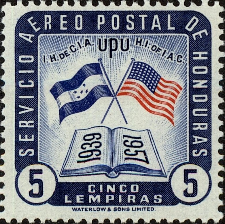 Visibility: public Image owner: none airmail 10/2/1958 5l multi issue=18th Anniversary of Institute for Inter-American Culture d=flag of Honduras & flag of United States unwmk Crops No visible images cropped from this one. Measurements Resolution is unknown. Source Source name: Colnect File URL: http://i.colnect.net/b/3794/300/Flags-of-Honduras-and-the-United-States.jpg Uploaded November 25, 2017, 8:08 pm by Stan Shebs |