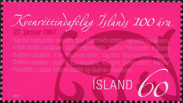 Visibility: public Image owner: none postage 2/15/2007 60kr multi issue=100 Years of The Women's Rights Association unwmk Crops No visible images cropped from this one. Measurements Resolution is unknown. Source Source name: Colnect File URL: http://i.colnect.net/b/3913/956/Women-s-Rights-Association-of-Iceland-100-years.jpg Uploaded November 27, 2017, 4:58 pm by Stan Shebs |