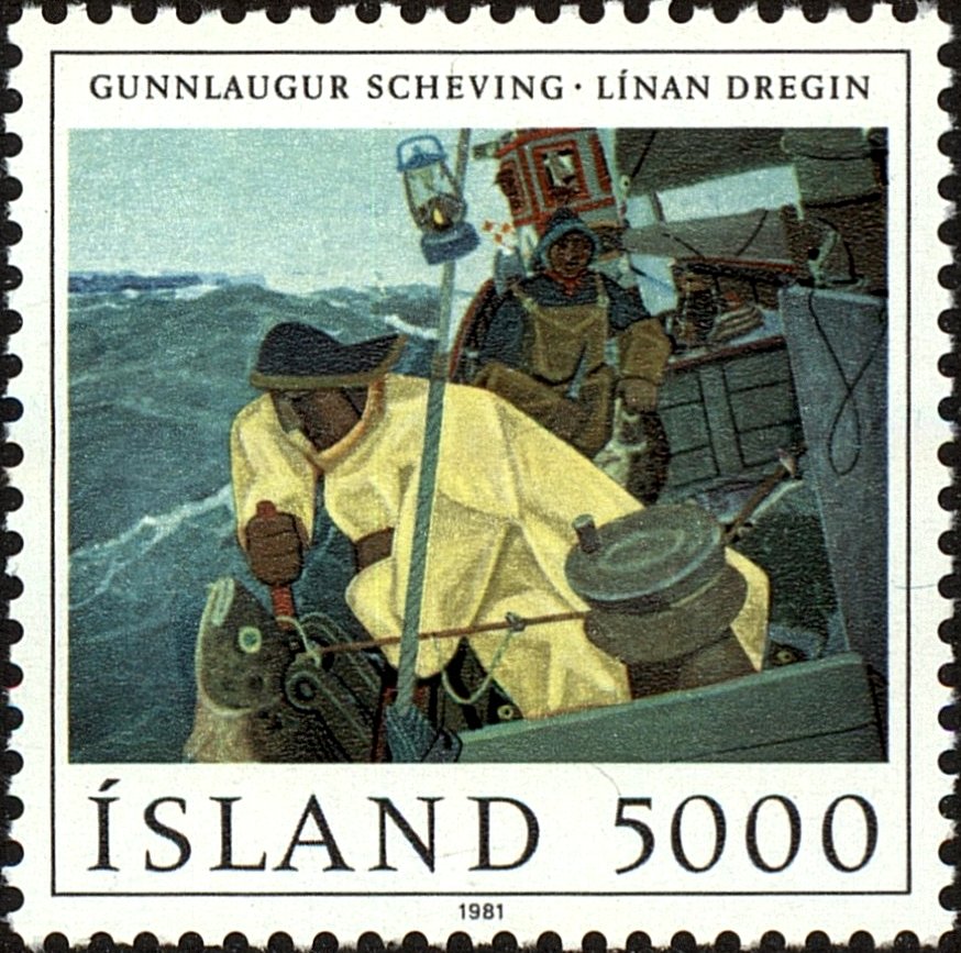 Visibility: public Image owner: none postage 10/21/1981 5000a multi issue=Gunnlaugur Scheving 75th d=Hauling the Line by Gunnlaugur Scheving unwmk perf=11.75 Crops No visible images cropped from this one. Measurements Resolution is unknown. Source Source name: Colnect File URL: http://i.colnect.net/b/3922/134/Painting.jpg Uploaded November 27, 2017, 5:20 pm by Stan Shebs |