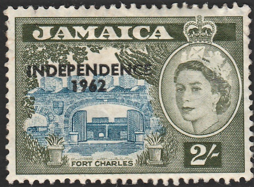 Visibility: public Image owner: none postage 8/8/1962 2sh grn&graybl issue=independence overprint d=Fort Charles & Queen Elizabeth II ovpt=INDEPENDENCE//1962 oc=blk on=1956-2sh wmk=mult crown & script CA Crops No visible images cropped from this one. Measurements Resolution is unknown. Source Source name: Colnect File URL: http://i.colnect.net/b/4199/576/Fort-Charles.jpg Uploaded November 30, 2017, 3:52 pm by Stan Shebs |
