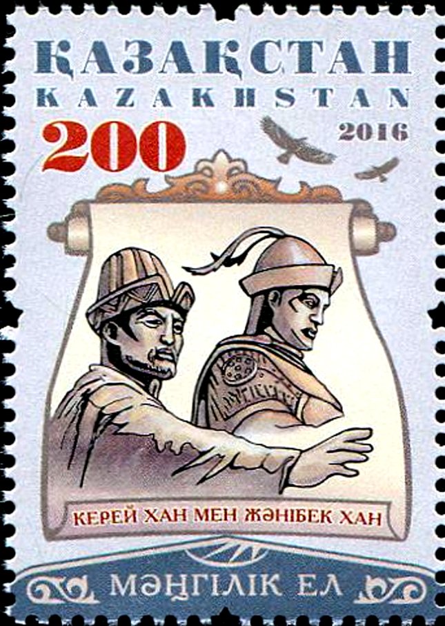 Visibility: public Image owner: none postage 11/2/2016 200(t) multi issue=Khans of the Kazakh state unwmk Crops No visible images cropped from this one. Measurements Resolution is unknown. Source Source name: Colnect File URL: http://i.colnect.net/b/4445/405/Kerei-Khan---Zhanibek-Khan.jpg Uploaded December 1, 2017, 9:40 pm by Stan Shebs |