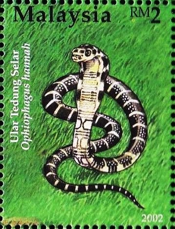 Visibility: public Image owner: none postage 3/9/2002 2rm multi dt=Malaysian Snakes d=Ophiophagus hannah (2002) wmk=SPM multiple Crops No visible images cropped from this one. Measurements Resolution is unknown. Source Source name: Colnect File URL: http://i.colnect.net/b/4348/018/King-Cobra-Ophiophagus-hannah.jpg Uploaded December 7, 2017, 6:44 pm by Stan Shebs |