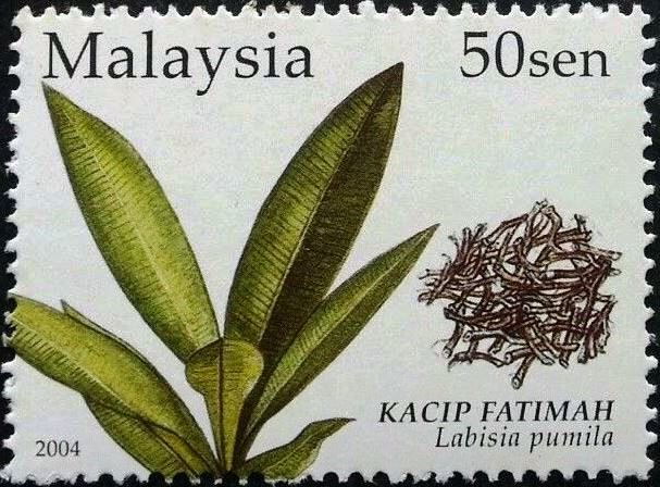 Visibility: public Image owner: none postage 12/11/2004 50sen multi dt=medicinal plants (2004 Malaysia) d=Labisia pumila wmk=POST OFFICE perf=12.75 Crops No visible images cropped from this one. Measurements Resolution is unknown. Source Source name: Colnect File URL: http://i.colnect.net/b/4335/691/Labisia-pumila.jpg Uploaded December 7, 2017, 7:01 pm by Stan Shebs |