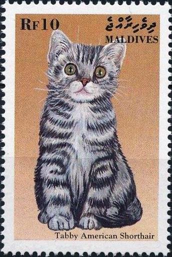Visibility: public Image owner: none postage 6/1/1998 10r multi issue=Cats 1998 dt=cats (1998 Maldive Islands) d=Tabby American shorthair unwmk perf=14.25 Crops No visible images cropped from this one. Measurements Resolution is unknown. Source Source name: Colnect File URL: http://i.colnect.net/b/4185/885/Tabby-American-Shorthair-Felis-silvestris-catus.jpg Uploaded December 7, 2017, 8:51 pm by Stan Shebs |