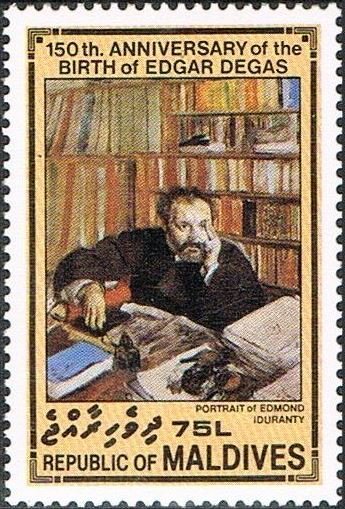 Visibility: public Image owner: none postage 12/10/1984 75l multi issue=150th Anniversary of the Birth of Edgar Degas d="Edmond Iduranty" - Degas unwmk perf=14 Crops No visible images cropped from this one. Measurements Resolution is unknown. Source Source name: Colnect File URL: http://i.colnect.net/b/4169/762/Portrait-of-Edmond-Iduranty.jpg Uploaded December 7, 2017, 9:46 pm by Stan Shebs |