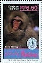 Visibility: public Image owner: none postage 5/20/1994 6.50r multi issue=100th Anniversary of Sierra Club dt=Endangered Species (1994 Maldive Islands) d=Macaca fuscata (1994) unwmk perf=14.25 Crops No visible images cropped from this one. Measurements Resolution is unknown. Source Source name: Colnect File URL: http://i.colnect.net/b/4218/861/Snow-Monkey-Japanese-Macaque-Macaca-fuscata.jpg Uploaded December 8, 2017, 3:13 pm by Stan Shebs |