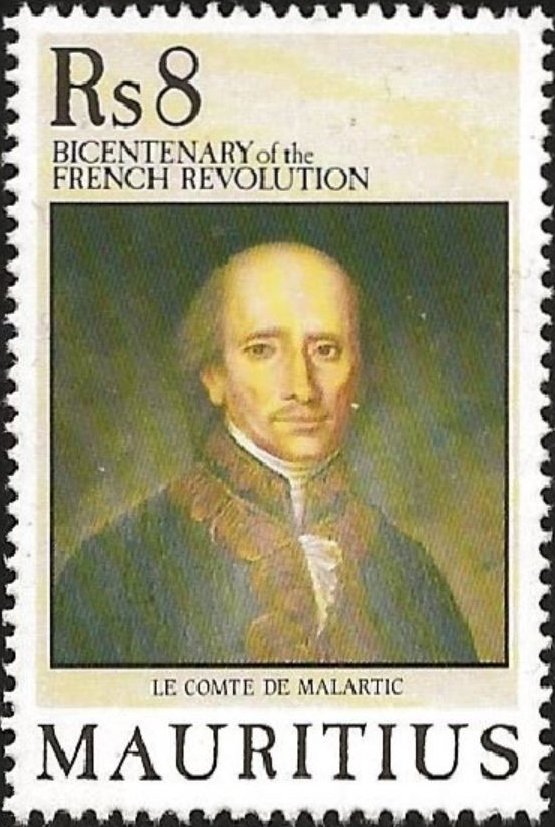 Visibility: public Image owner: none postage 7/14/1989 8r multi issue=French Revolution 200th d=Comte de Malartic wmk=mult crown & script CA perf=14 Crops No visible images cropped from this one. Measurements Resolution is unknown. Source Source name: Colnect File URL: http://i.colnect.net/b/3551/935/Comte-de-Malartic.jpg Uploaded December 8, 2017, 11:54 pm by Stan Shebs |