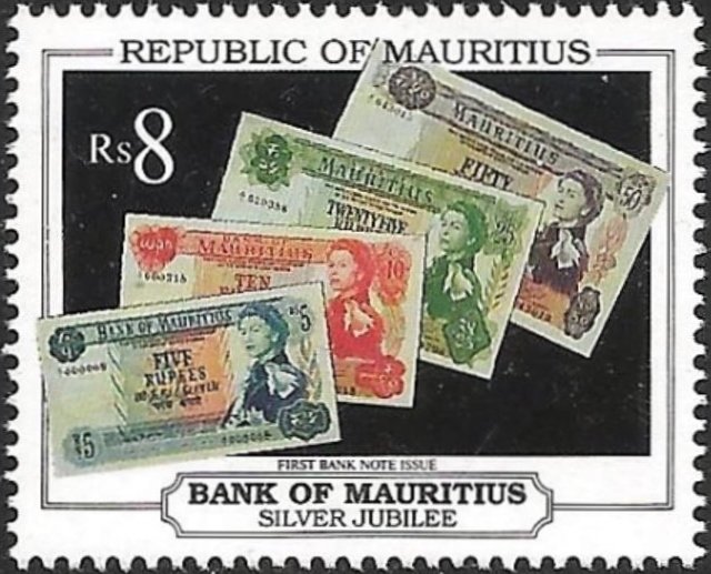 Visibility: public Image owner: none postage 10/29/1992 8r multi issue=25th Anniversary of Bank of Mauritius wmk=mult crown & script CA Crops No visible images cropped from this one. Measurements Resolution is unknown. Source Source name: Colnect File URL: http://i.colnect.net/b/3551/909/First-bank-note-issues.jpg Uploaded December 9, 2017, 1:19 pm by Stan Shebs |