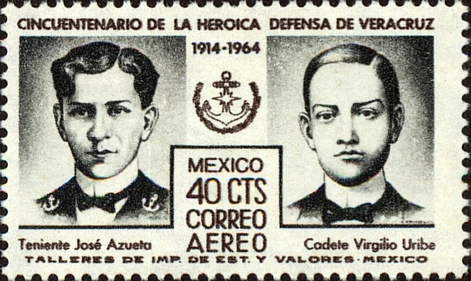 Visibility: public Image owner: none airmail 6/20/1964 40c dkbrn&blkol issue=50th Anniversary of the Heroic Defence of Veracruz d=Lieut. Jose Azueto and Cadet Virgillo Ur wmk=MEX & eagle perf=14 Crops No visible images cropped from this one. Measurements Resolution is unknown. Source Source name: Colnect File URL: http://i.colnect.net/b/4076/068/Lieutenant-Jose-Azueta--Seekadett-Virgilio-Uribe.jpg Uploaded December 9, 2017, 2:00 pm by Stan Shebs |