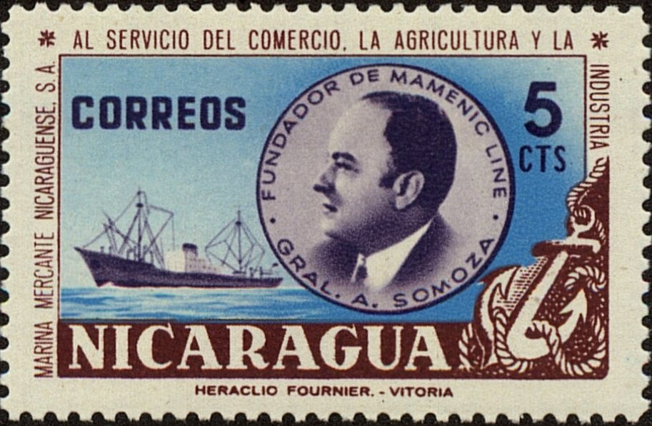Visibility: public Image owner: none postage 10/15/1957 5c multi issue=Nicaragua's Merchant Marine dt=ships (1957) d=General A. Somoza unwmk Crops No visible images cropped from this one. Measurements Resolution is unknown. Source Source name: Colnect File URL: http://i.colnect.net/b/4354/478/Gen-Anastasio-Somoza--amp--freighter.jpg Uploaded December 13, 2017, 7:30 pm by Stan Shebs |