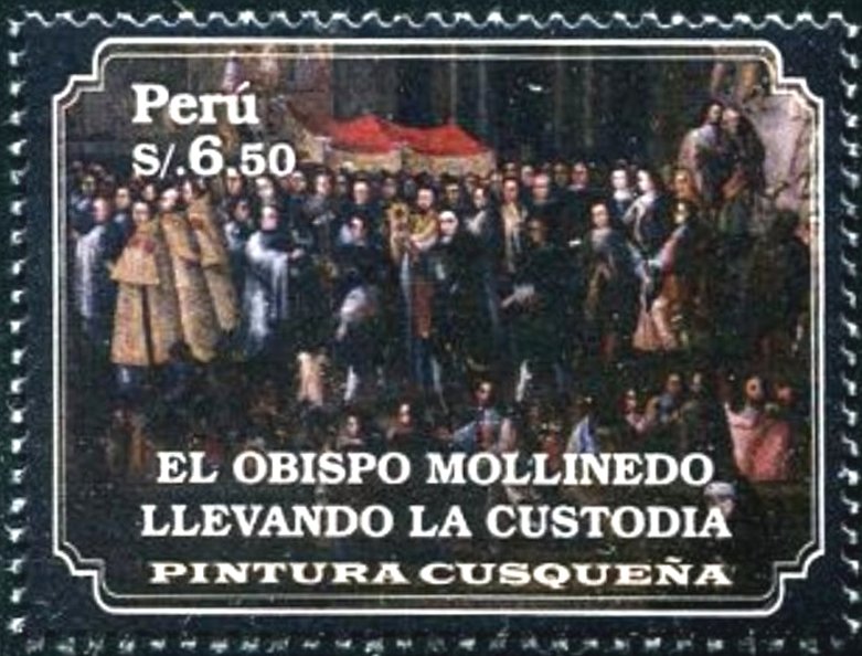 Visibility: public Image owner: none postage 1/10/2017 6.50s multi issue=Paintings from Cusco d=The bishop Mollinedo shows the Monstrance unwmk Crops No visible images cropped from this one. Measurements Resolution is unknown. Source Source name: Colnect File URL: http://i.colnect.net/b/4259/850/The-bishop-Mollinedo-shows-the-Monstrance.jpg Uploaded December 27, 2017, 5:08 pm by Stan Shebs |