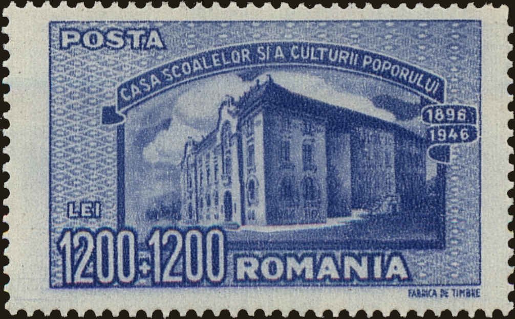 Visibility: public Image owner: none semipostal 3/5/1947 1200+1200l ultra issue=50th Anniversary of the Vocational School in Romania wmk=cross & crown mult Crops No visible images cropped from this one. Measurements Resolution is unknown. Source Source name: Colnect File URL: http://i.colnect.net/b/4263/017/School-house.jpg Uploaded December 30, 2017, 7:43 pm by Stan Shebs |