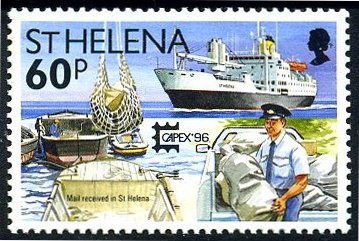 Visibility: public Image owner: none postage 6/8/1996 60p multi issue=CAPEX '96 d=Mail received in St Helena wmk=mult crown & script CA Crops No visible images cropped from this one. Measurements Resolution is unknown. Source Source name: Colnect File URL: http://i.colnect.net/b/4468/901/-St-Helena-II--mail-ship-unloading-at-St-Helena.jpg Uploaded January 1, 2018, 2:18 pm by Stan Shebs |