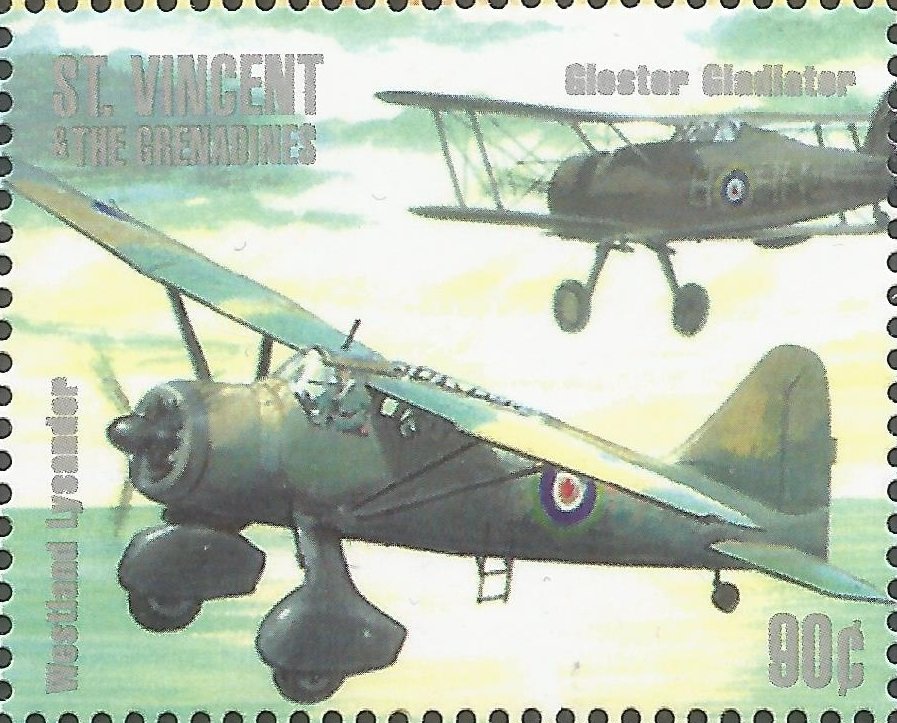Visibility: public Image owner: none postage 12/18/2000 90c multi issue=60th Anniversary of Battle of Britain dt=Airplanes d=Westland Lysander & Gloster Gladiator wmk=St Edwards crown & CA perf=14.25x14.5 Crops No visible images cropped from this one. Measurements Resolution is unknown. Source Source name: Colnect File URL: http://i.colnect.net/b/4511/302/Gloster-Gladiator-Westland-Lysander.jpg Uploaded January 2, 2018, 4:26 pm by Stan Shebs |