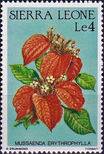 Visibility: public Image owner: none postage 8/25/1986 4le multi dt=flowers of Sierra Leone d=Mussaenda erythrophylla unwmk perf=15 Crops No visible images cropped from this one. Measurements Resolution is unknown. Source Source name: Colnect File URL: http://i.colnect.net/b/4129/326/Mussaenda-erythrophylla.jpg Uploaded January 3, 2018, 8:34 pm by Stan Shebs |