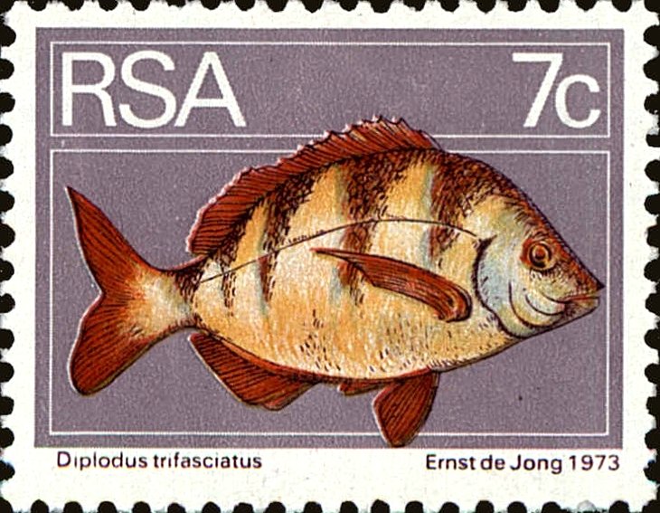 Visibility: public Image owner: none postage 11/11/1974 7c issue=1974 wmk=RSA in triangle Crops No visible images cropped from this one. Measurements Resolution is unknown. Source Source name: Colnect File URL: http://i.colnect.net/b/4030/422/Zebra-Bream-Diplodus-trifasciatus.jpg Uploaded January 5, 2018, 12:22 am by Stan Shebs |