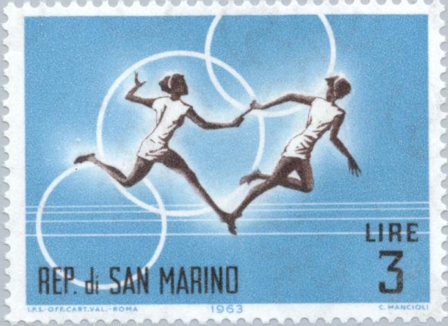 Visibility: public Image owner: none postage 9/21/1963 3l multi dt=sports (1963 San Marino) d=relay race wmk=triskelion perf=14 Crops No visible images cropped from this one. Measurements Resolution is unknown. Source Source name: Colnect File URL: http://i.colnect.net/images/b/170/706/Relay-Race.jpg Uploaded August 26, 2014, 4:38 pm by Stan Shebs |
