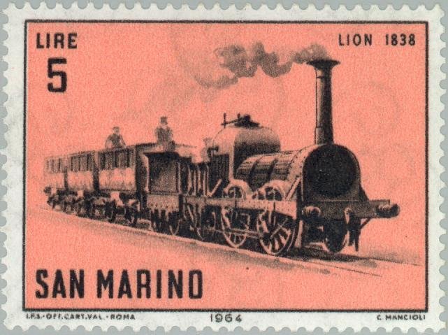 Visibility: public Image owner: none postage 8/20/1964 5l multi dt=historic locomotives (1964) wmk=triskelion perf=14 Crops No visible images cropped from this one. Measurements Resolution is unknown. Source Source name: Colnect File URL: http://i.colnect.net/b/170/908/Lion-1838.jpg Uploaded August 26, 2014, 4:38 pm by Stan Shebs |