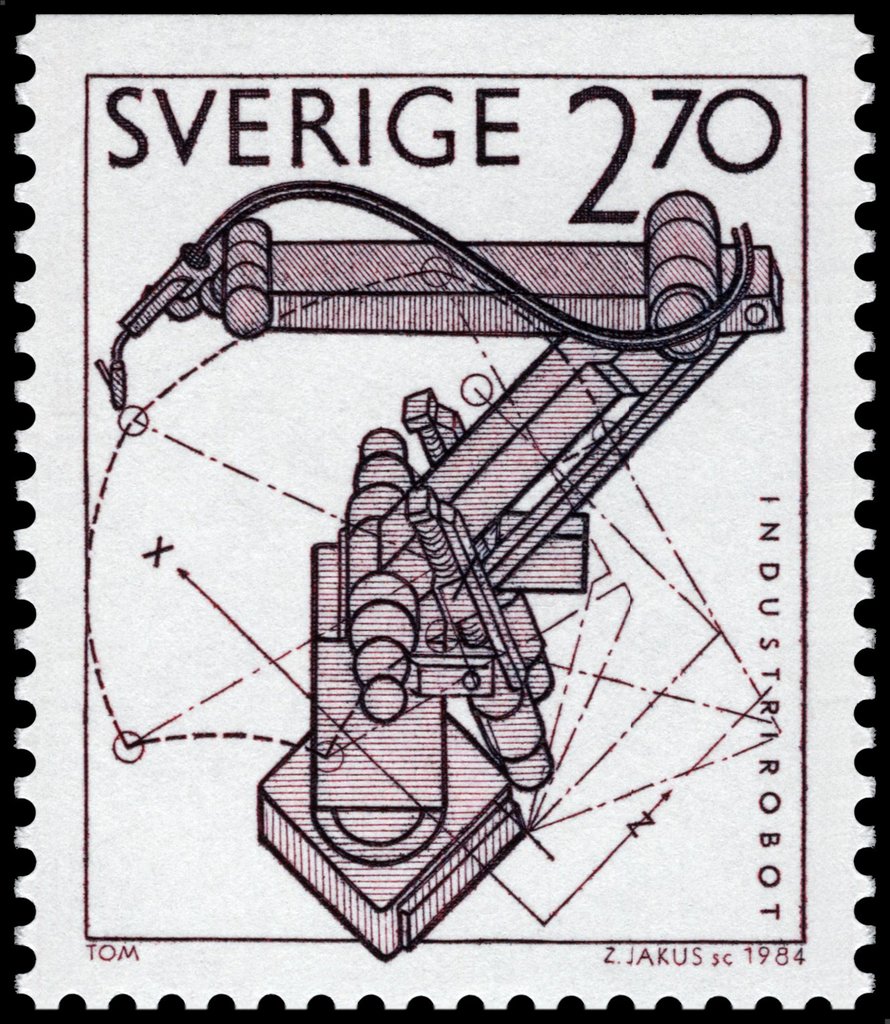 Visibility: public Image owner: none postage 6/6/1984 2,70kr brn issue=patent system 100th unwmk Crops No visible images cropped from this one. Measurements Resolution is unknown. Source Source name: Colnect File URL: http://i.colnect.net/b/4389/414/ASEA-IRB-6-industrial-robot-for-arc-welding.jpg Uploaded January 8, 2018, 3:13 am by Stan Shebs |
