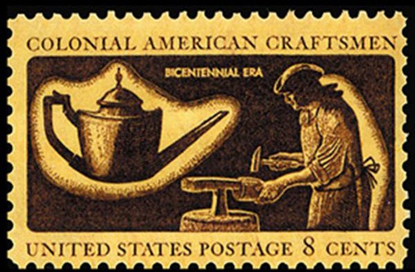 Visibility: public Image owner: none postage 7/4/1972 8c dkbrn dt=colonial craftsmen d=silversmith unwmk perf=11x10.5 Crops No visible images cropped from this one. Measurements Resolution is unknown. Source Source name: Colnect File URL: http://i.colnect.net/b/4208/211/Craftsmen-Silversmith.jpg Uploaded January 10, 2018, 8:00 pm by Stan Shebs |