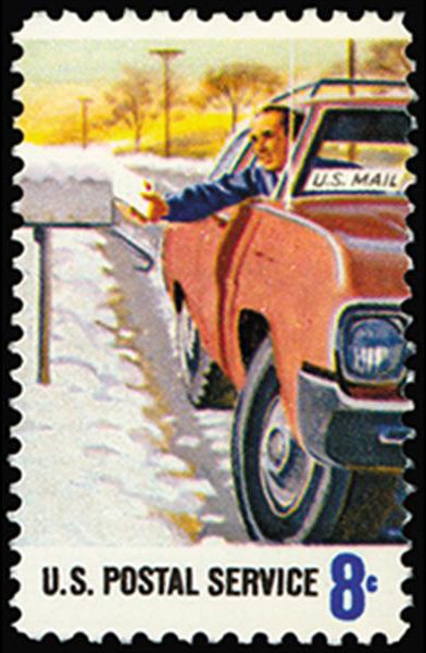 Visibility: public Image owner: none postage 4/30/1973 8c multi dt=postal employees d=rural delivery unwmk perf=10.5x11 Crops No visible images cropped from this one. Measurements Resolution is unknown. Source Source name: Colnect File URL: http://i.colnect.net/b/4208/187/Postal-Service-Rural-Mail-Delivery.jpg Uploaded January 10, 2018, 8:01 pm by Stan Shebs |