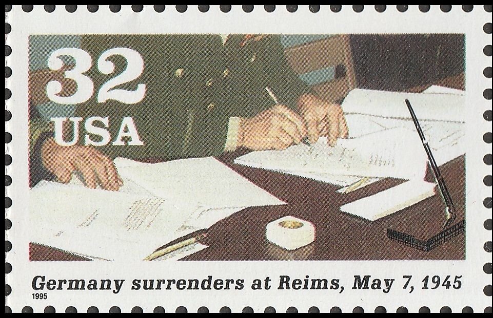 Visibility: public Image owner: none postage 9/2/1995 32c multi issue=1945: Victory at Last dt=World War II (1991) d=Germany surrenders at Reims unwmk perf=11 Crops No visible images cropped from this one. Measurements Resolution is unknown. Source Source name: Colnect File URL: http://i.colnect.net/b/4230/740/World-War-II---Surrender-At-Reims.jpg Uploaded January 11, 2018, 12:01 am by Stan Shebs |