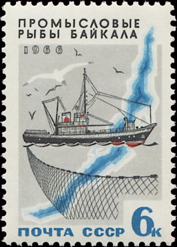 Visibility: public Image owner: none postage 9/25/1966 6k multi dt=Lake Baikal fishes d=trawler net & map of Baikal unwmk perf=12 Crops No visible images cropped from this one. Measurements Resolution is unknown. Source Source name: Colnect File URL: http://i.colnect.net/b/4520/122/Lake-Baikal-and-Fishing-Boat.jpg Uploaded January 12, 2018, 7:31 pm by Stan Shebs |