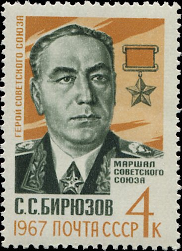 Visibility: public Image owner: none postage 5/9/1967 4k och&dkgraygrn d=Marshal Biryuzov unwmk perf=12 Crops No visible images cropped from this one. Measurements Resolution is unknown. Source Source name: Colnect File URL: http://i.colnect.net/b/4494/353/Marshal-of-Soviet-Union-SSBiryuzov.jpg Uploaded January 12, 2018, 7:37 pm by Stan Shebs |