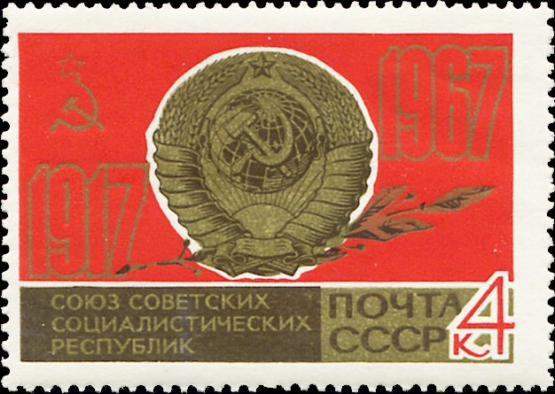 Visibility: public Image owner: none postage 8/4/1967 4k multi issue=October Revolution 50th d=Soviet flag & Soviet arms unwmk perf=12 Crops No visible images cropped from this one. Measurements Resolution is unknown. Source Source name: Colnect File URL: http://i.colnect.net/b/4494/827/Soviet-Arms-and-Flag.jpg Uploaded January 12, 2018, 7:37 pm by Stan Shebs |