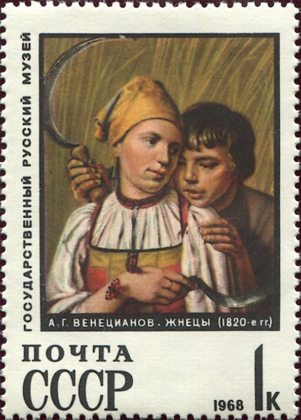Visibility: public Image owner: none postage 12/25/1968 1k multi dt=paintings in Russian State Museum d=The Reapers 1820 AG Venetsianov 1780-1847 unwmk perf=12 Crops No visible images cropped from this one. Measurements Resolution is unknown. Source Source name: Colnect File URL: http://i.colnect.net/b/4544/486/-The-Reapers--1820-AG-Venetsianov-1780-1847.jpg Uploaded January 12, 2018, 7:46 pm by Stan Shebs |