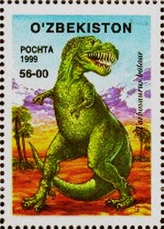 Visibility: public Image owner: none postage 12/13/1999 56.00s multi dt=prehistoric animals (1999 Uzbekistan) d=Tarbosaurus bataar (1999) unwmk Crops No visible images cropped from this one. Measurements Resolution is unknown. Source Source name: Colnect File URL: http://i.colnect.net/b/4415/589/Tarbosaurus-bataar.jpg Uploaded January 12, 2018, 8:28 pm by Stan Shebs |
