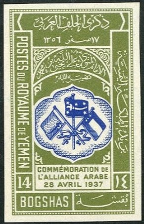 Visibility: public Image owner: none postage 4/28/1939 14b issue=Arab Alliance 2nd wmk=Arabic chars & YG Crops No visible images cropped from this one. Measurements Resolution is unknown. Source Source name: Colnect File URL: http://i.colnect.net/b/4278/631/Flags-of-Saudi-Arabia-Yemen-and-Iraq.jpg Uploaded January 13, 2018, 10:07 pm by Stan Shebs |