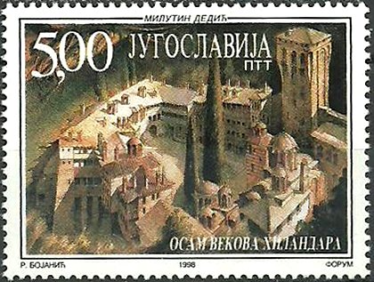 Visibility: public Image owner: none postage 12/9/1998 5nd multi issue=800th Anniversary of Hilandar Monastery unwmk perf=13.75 Crops No visible images cropped from this one. Measurements Resolution is unknown. Source Source name: Colnect File URL: http://i.colnect.net/b/4479/334/Paintings-by-Milutin-Dedic.jpg Uploaded January 15, 2018, 6:34 pm by Stan Shebs |