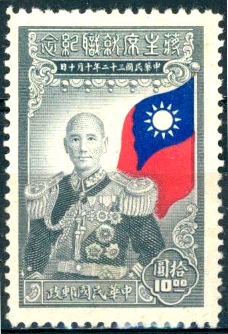 Visibility: public Image owner: none postage 10/10/1945 $10 issue=Chiang Kai-shek inauguration unwmk Crops No visible images cropped from this one. Measurements Resolution is unknown. Source Source name: Colnect File URL: http://i.colnect.net/b/4220/800/President-Chiang-Kai-shek---flag.jpg Uploaded January 16, 2018, 4:00 pm by Stan Shebs |