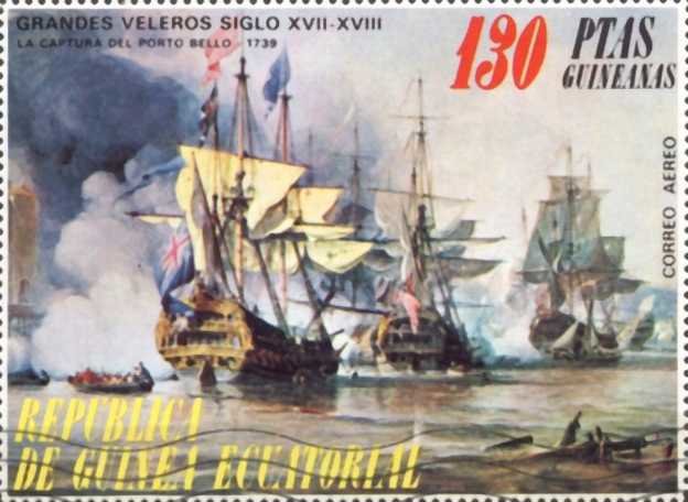 Visibility: public Image owner: none postage 9/5/1975 130p multi dt=sailing ships (1975 Equatorial Guinea) unwmk Crops No visible images cropped from this one. Measurements Resolution is unknown. Source Source name: Colnect File URL: http://i.colnect.net/b/4459/070/The-capture-of-Porto-Bello.jpg Uploaded January 16, 2018, 9:33 pm by Stan Shebs |