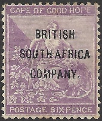 Visibility: public Image owner: none postage 5/22/1896 6p vio issue=1896c d=Hope seated var=frame line ovpt=BRITISH//SOUTH AFRICA//COMPANY. oc=blk on=issuer=Cape of Good Hope-6p-vio wmk=anchor (1884) perf=14 Crops No visible images cropped from this one. Measurements Resolution is unknown. Source Source name: Colnect File URL: http://i.colnect.net/b/4370/446/-Hope--seated-with-vine-and-ram---overprinted.jpg Uploaded January 17, 2018, 5:45 pm by Stan Shebs |