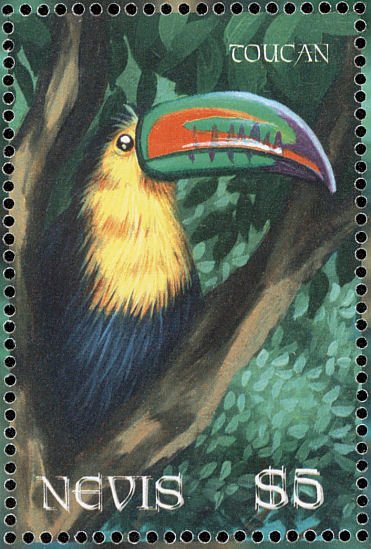 Visibility: public Image owner: none postage 1/31/2001 $5 multi issue=Wildlife from "The Garden of Eden" d=Ramphastos sulfuratus (2001) wmk=crown & CA Crops No visible images cropped from this one. Measurements Resolution is unknown. Source Source name: Colnect File URL: http://i.colnect.net/b/4562/558/Keel-billed-Toucan-Ramphastos-sulfuratus.jpg Uploaded January 23, 2018, 10:27 pm by Stan Shebs |