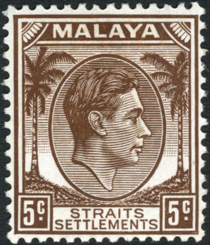Visibility: public Image owner: none postage 5c brn issue=1937 d=King George VI & palms wmk=mult crown & script CA perf=14 pl=II Crops No visible images cropped from this one. Measurements Resolution is unknown. Source Source name: Colnect File URL: http://i.colnect.net/b/4291/150/Straits-Settlements.jpg Uploaded January 24, 2018, 3:26 pm by Stan Shebs |