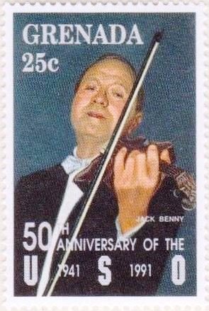 Visibility: public Image owner: none postage 6/1/1992 25c multi issue=50th Anniversary of United Service Organization d=Jack Benny wmk=St Edwards crown & CA perf=14.25 Crops No visible images cropped from this one. Measurements Resolution is unknown. Source Source name: Colnect File URL: http://i.colnect.net/b/4560/413/Jack-Bdenny.jpg Uploaded March 1, 2018, 3:45 pm by Stan Shebs |