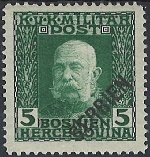 Visibility: public Image owner: none postage 5h grn issue=1916 ovpt angled d=Franz Josef (1912) ovpt=SERBIEN(angle) oc=blk on=issuer=Bosnia & Herzegovina-1912-5h unwmk perf=12.5 Crops No visible images cropped from this one. Measurements Resolution is unknown. Source Source name: Colnect File URL: http://i.colnect.net/b/3022/660/overprint-SERBIEN.jpg Uploaded March 8, 2018, 4:38 pm by Stan Shebs |