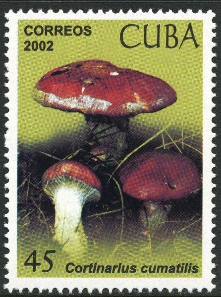 Visibility: public Image owner: none postage 6/20/2002 45c multi dt=Fungi (2001 Cuba) d=Cortinarius cumatillis unwmk perf=13x12.75 Crops No visible images cropped from this one. Measurements Resolution is unknown. Source Source name: Colnect File URL: http://i.colnect.net/b/4442/207/Cortinarius-cumatillis.jpg Uploaded March 8, 2018, 10:04 pm by Stan Shebs |