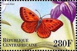 Visibility: public Image owner: none postage 1/24/2000 280fr multi issue=Butterflies from Around the World dt=Butterflies (2000 Central Africa) d=Lycaena dispar (2000) unwmk Crops No visible images cropped from this one. Measurements Resolution is unknown. Source Source name: Colnect File URL: http://i.colnect.net/b/4742/180/Lycaena-dispar.jpg Uploaded March 26, 2018, 11:07 pm by Stan Shebs |